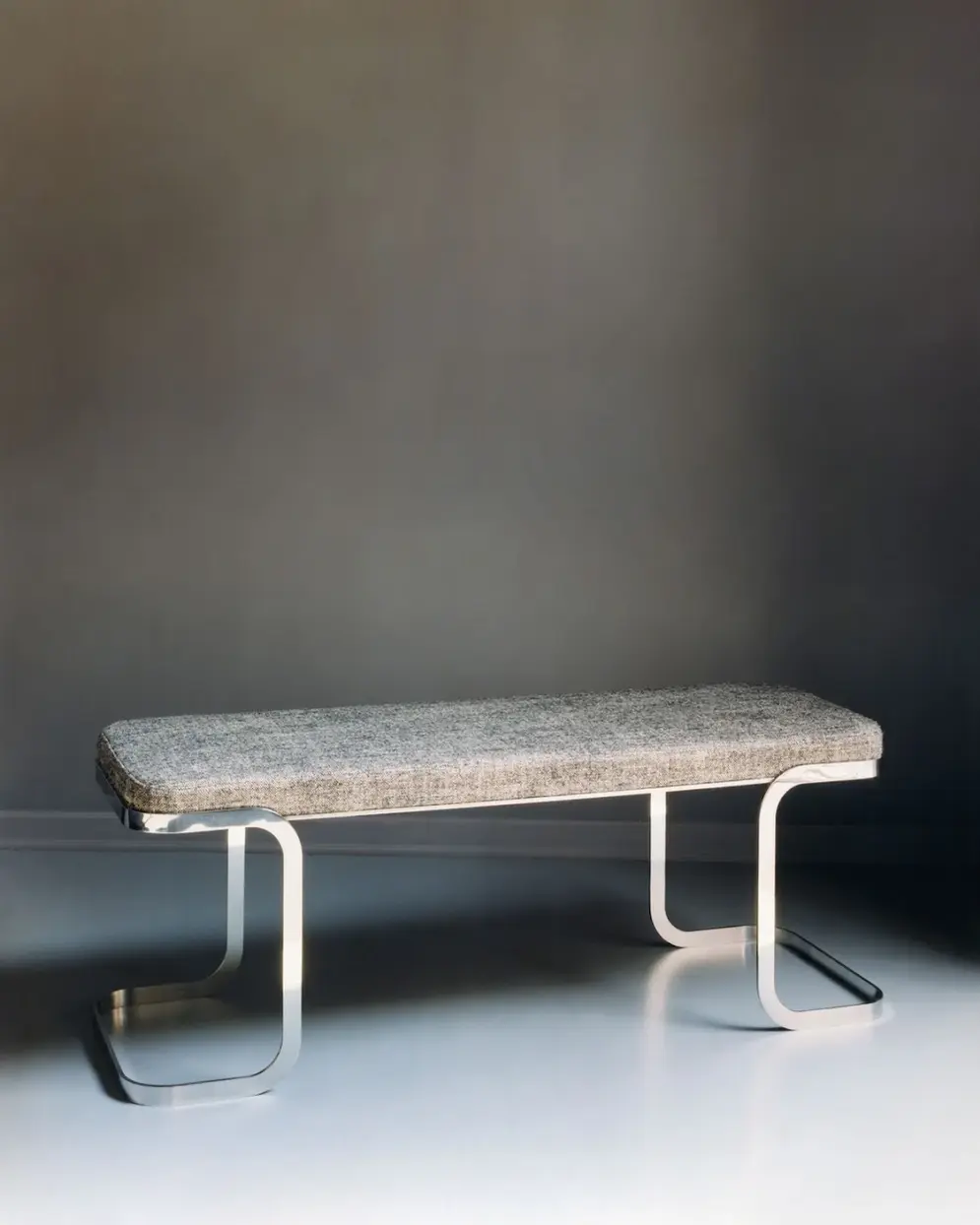 With tight dimensions, the Miro bench , light and handy, is a useful piece, a solution that can be married in such different situations and style. Inspired by the Miro desk designed by architects Lazzarini&Pickering for the previous collection II, it comes in fabric or leather. In higher size, it can be declinated like a console, with tempered glass, leather or marble top